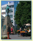 of the 73-meter high church is a statue of Leifur Eiriksson,