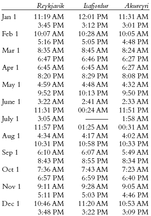 TIME: Iceland stays on Greenwich Mean Time (GMT) all year round.