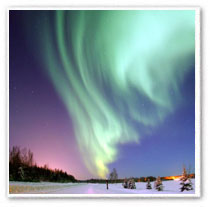 When is the best time to see them? The Northern Light Inn suggests visiting September to mid-April. Venture outdoors under a clear, dark sky, preferably cold, but not too cold. Usually they appear after dinner, beginning around 9 p.m., and continue to dance past midnight, sometimes until breakfast. The Inn has posted a spectacular collection of 18 images to their Web site for all to enjoy (www.northernlightinn.is). |